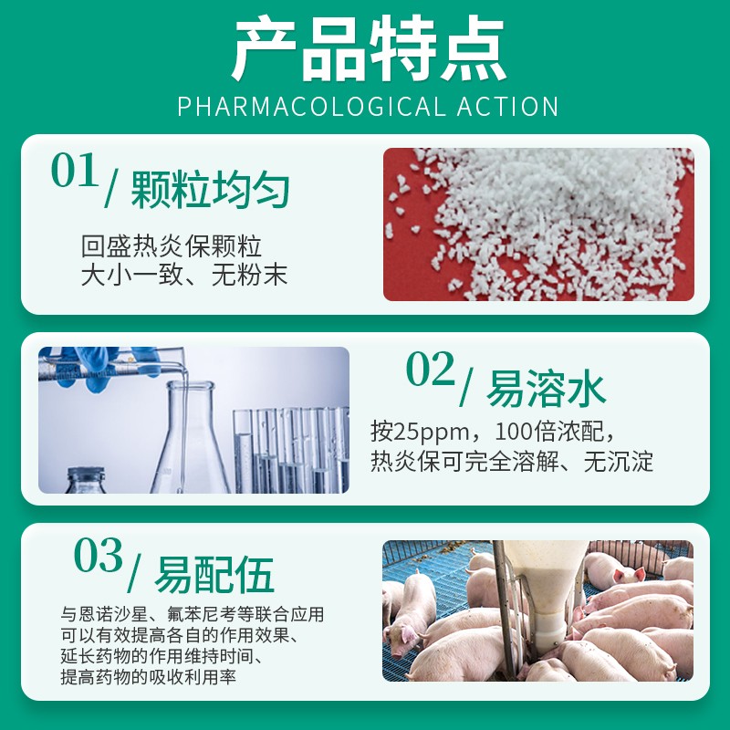 - 商品名称:【回盛生物】热炎保 氟尼辛葡甲胺颗粒500g 解热镇痛消炎 治疗畜禽感冒发烧退烧降温清除内毒素