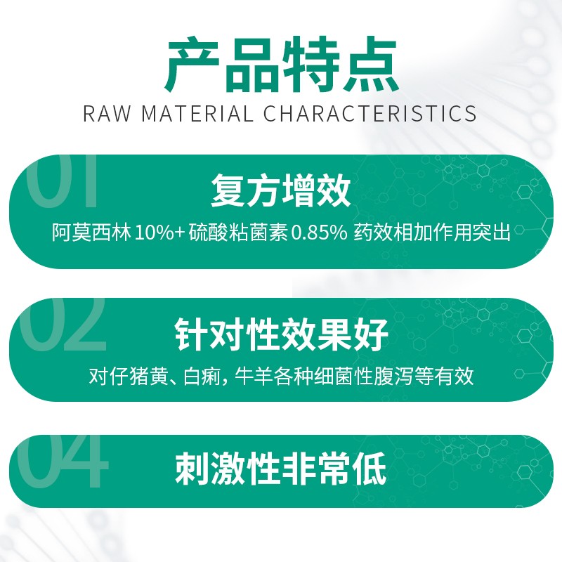 - 主要成分:阿莫西林+硫酸黏菌素