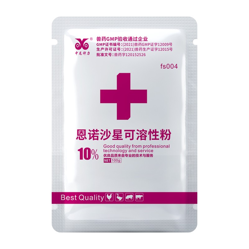 - 商品名称:【中龙神力】恩诺沙星可溶性粉 100g/袋 副猪、链球菌、关节肿大,痢疾国标可追溯