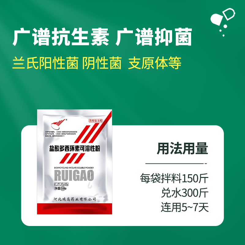 - 商品名称:*【绿健兽药】10%盐酸多西环素可溶性粉100g支原体肺炎球菌链球菌巴氏杆菌沙门氏菌嗜血杆菌
