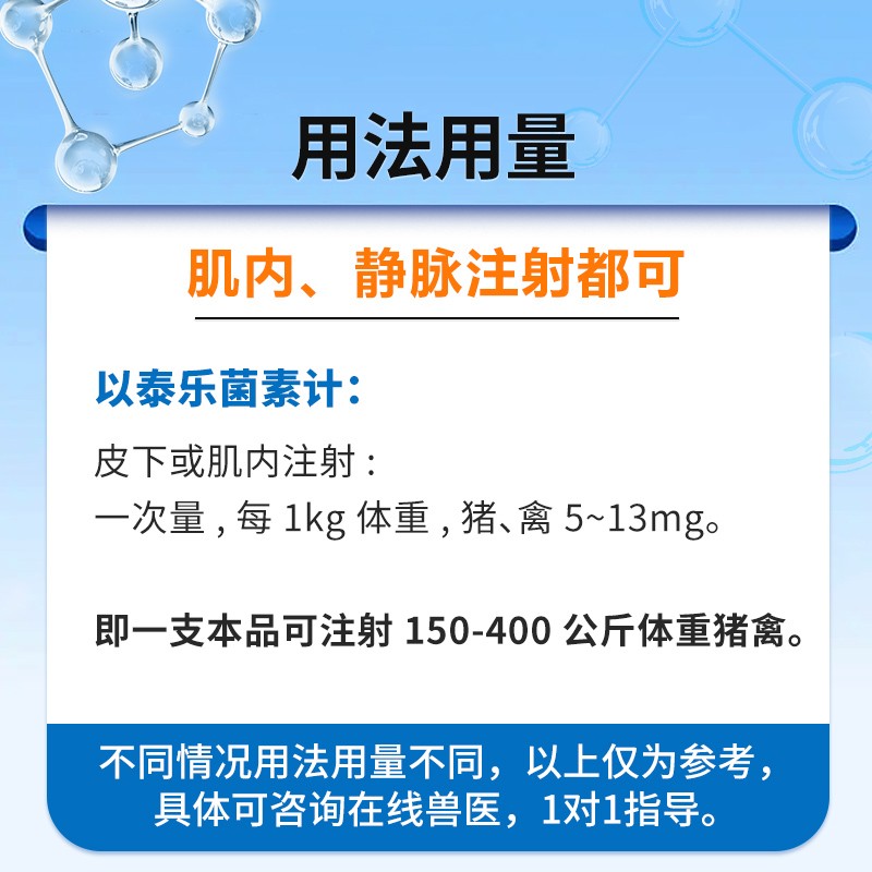 管理员:混合注射就可以了,一支配一支的。猪羊每公斤0.1ml,牛、马每公斤0.05-0.1ml,一天一次连续使用3-5天