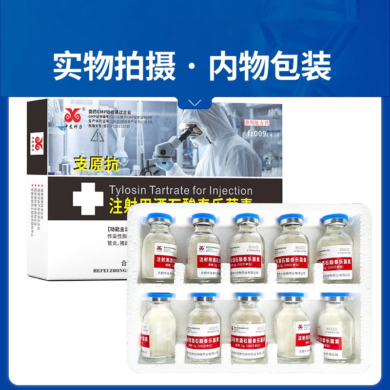 - 商品名称:【中龙神力】注射用酒石酸泰乐菌素 支原体肺炎 呼吸道病 咳嗽2g*10支/盒