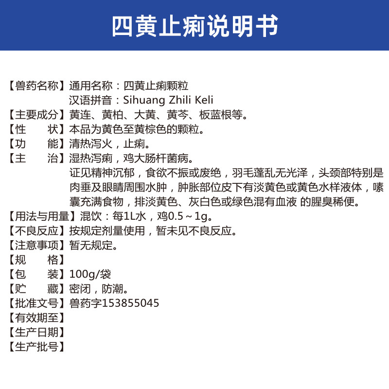 - 商品名称:【吉博士】四黄止痢颗粒100g 止痢 清热泻火 大肠杆菌 黄白便