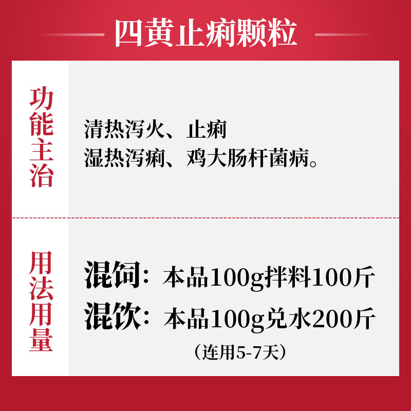 管理员:您好,四黄止痢是100克拌料100斤,治疗用量哦
