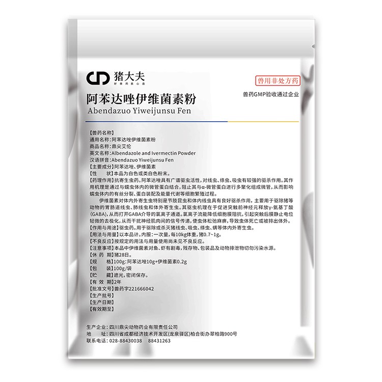- 商品名称: 【猪大夫】100g阿苯达唑伊维菌素粉 体内外驱虫畜禽通用孕畜可用线虫吸虫绦虫螨虫可拌料兑水