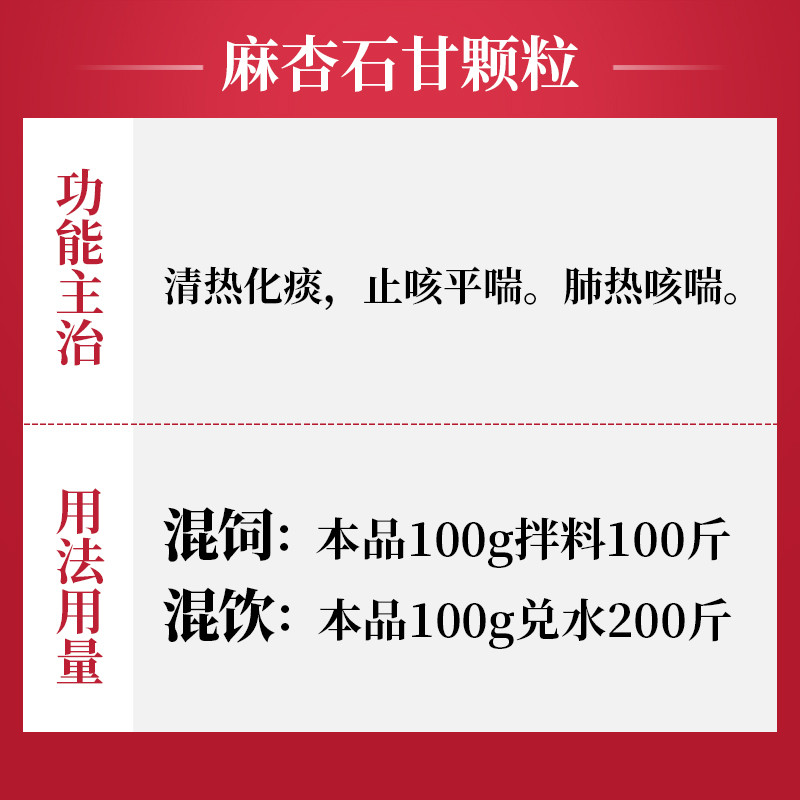 管理员:您好,麻杏石甘散治疗量是1000g拌料1000斤,20%包被替米考星治疗量是100克拌料200斤